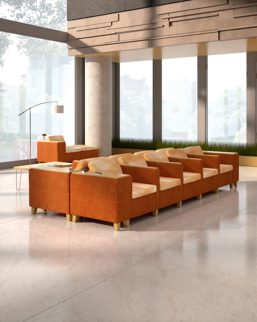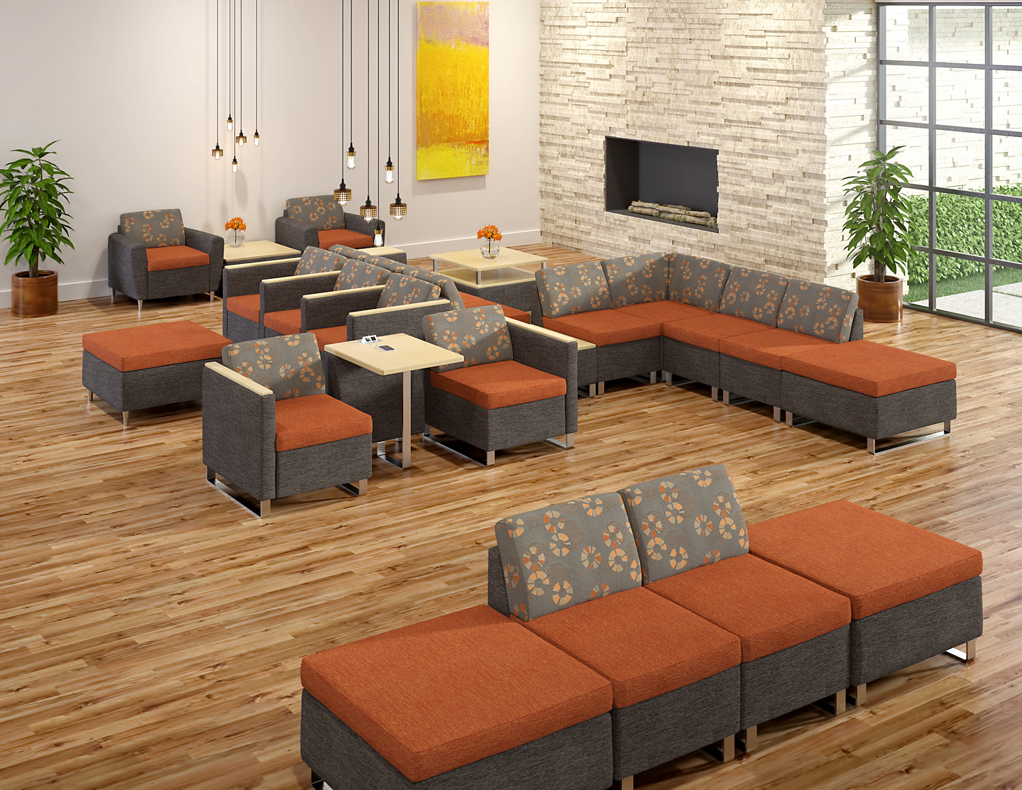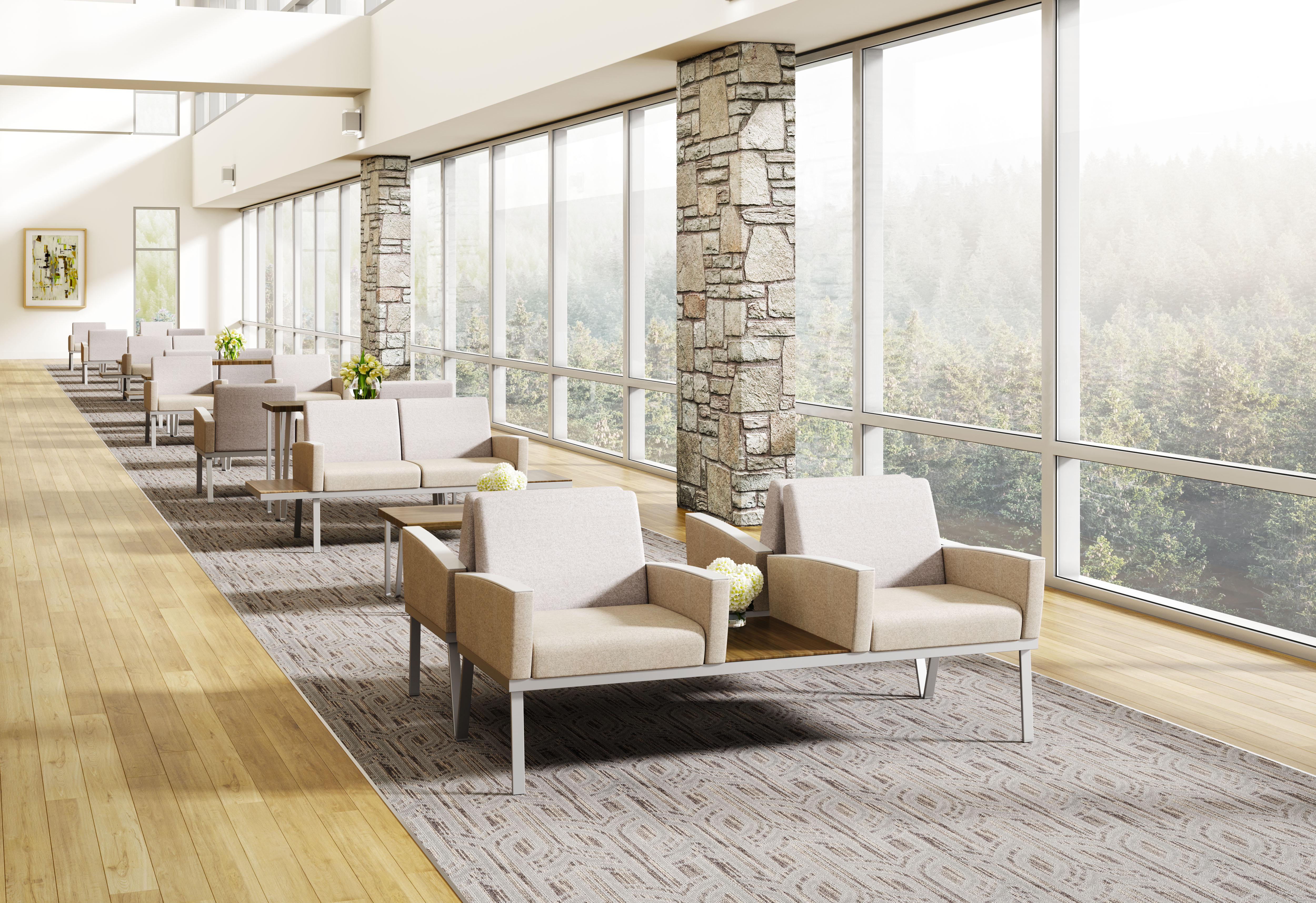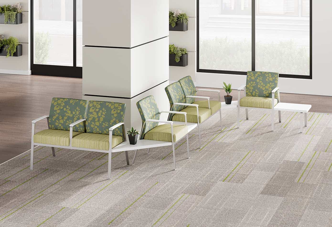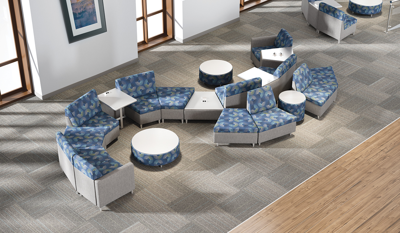 Hale Easy Access Seating, shown with Full Cap option; Fabric: Stinson Gradation Berber on backs and Architex Happy Cloud Nine on seats