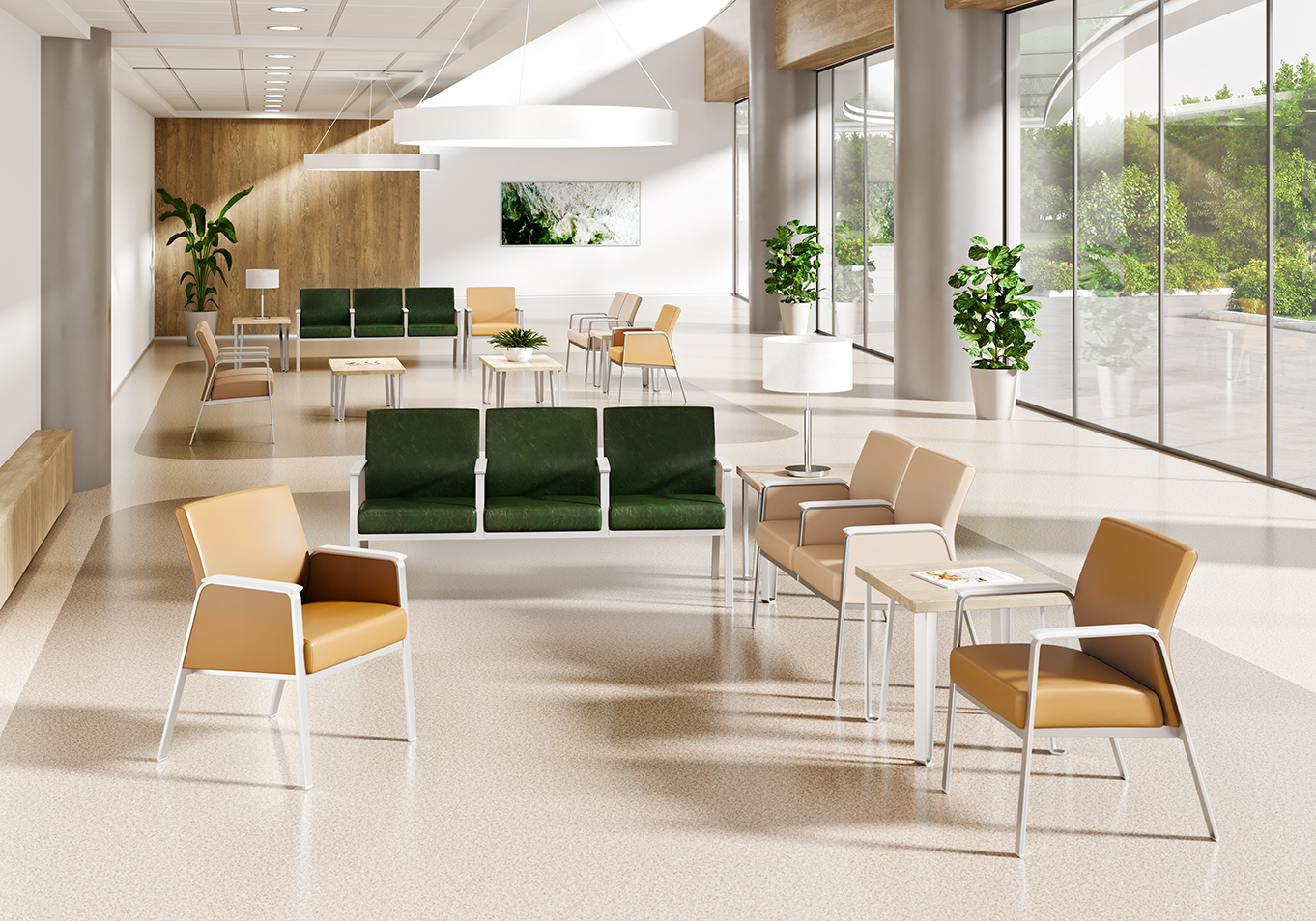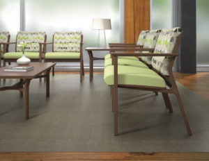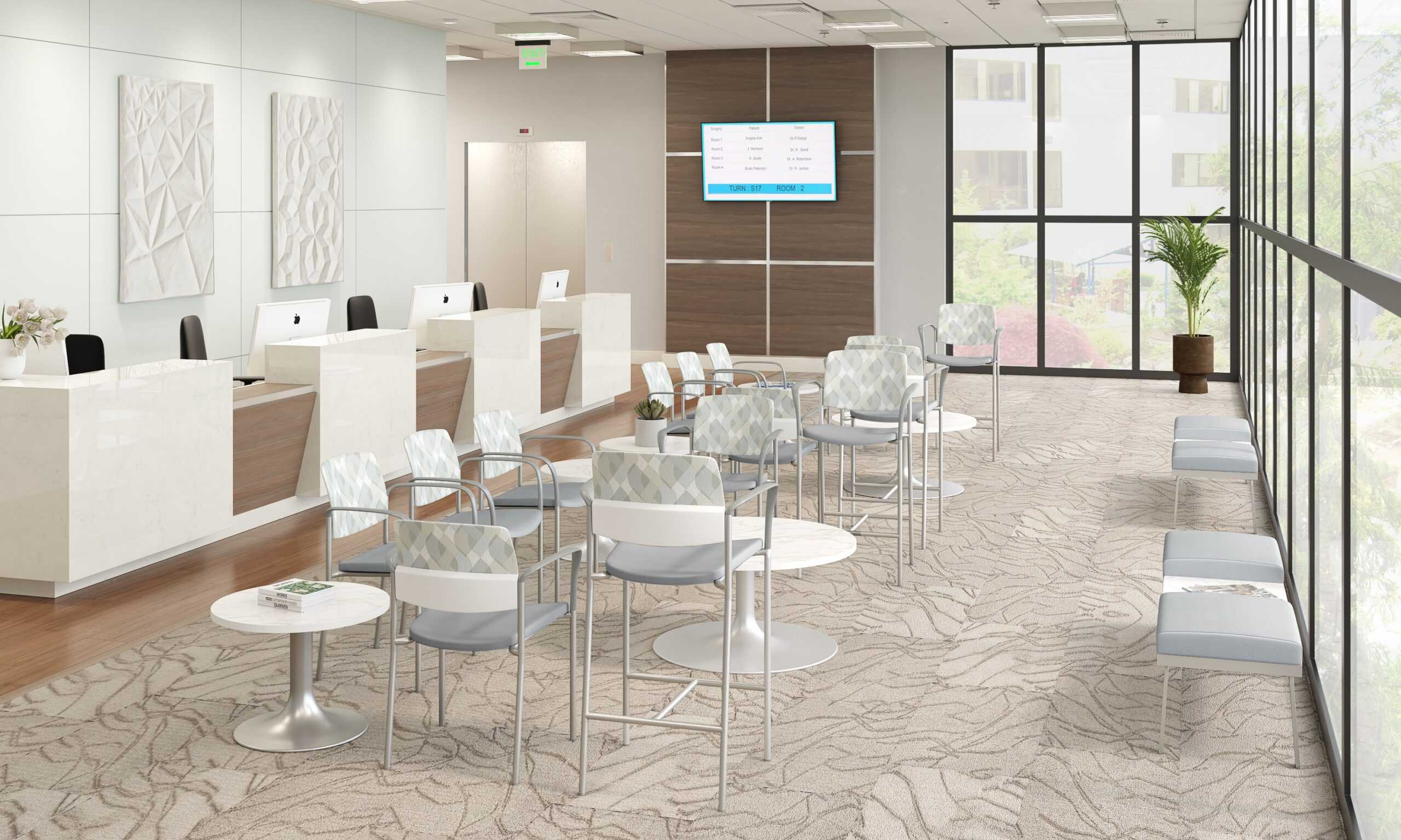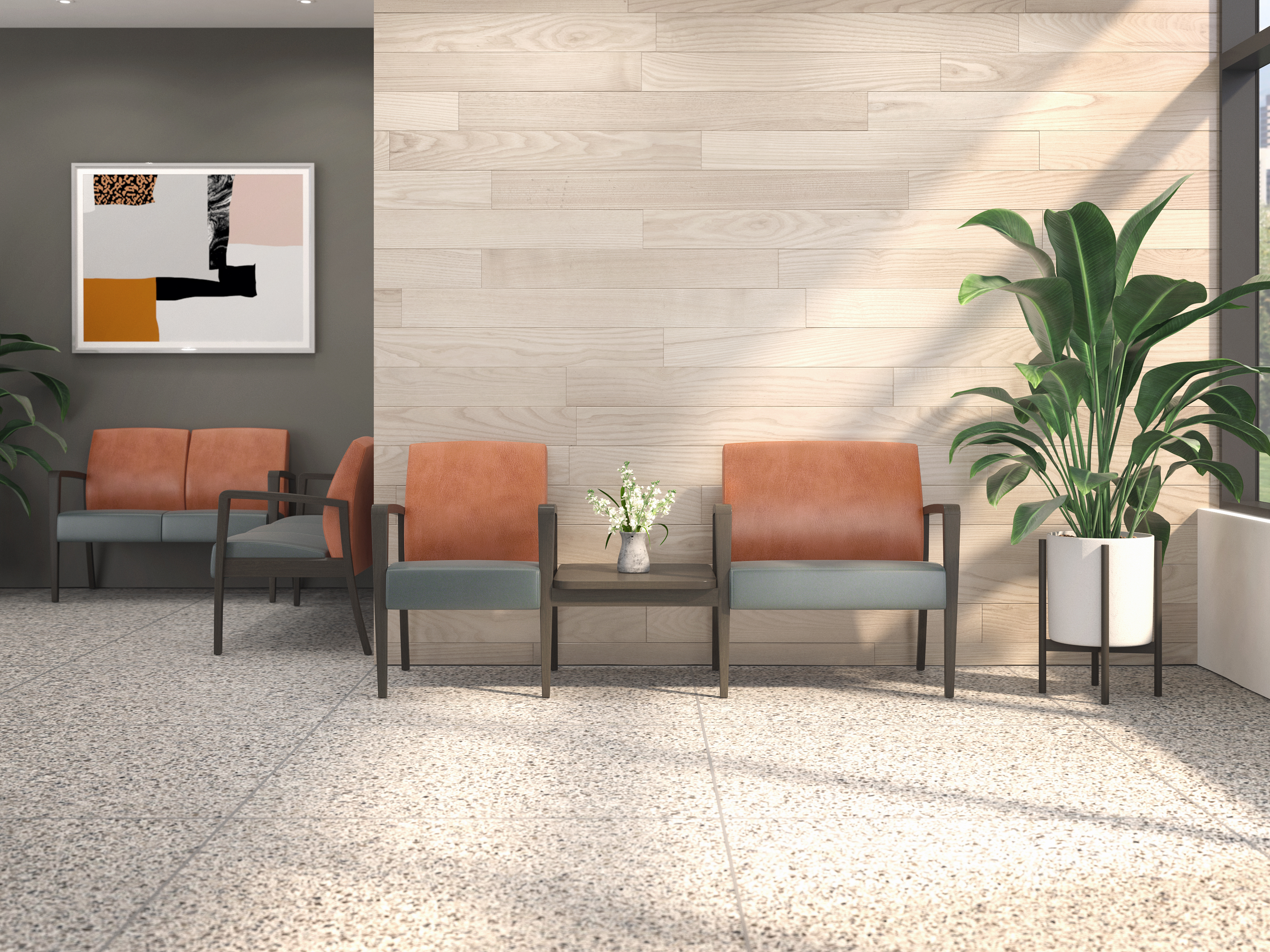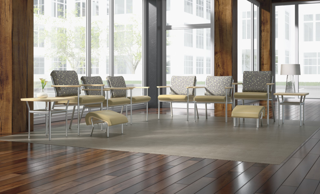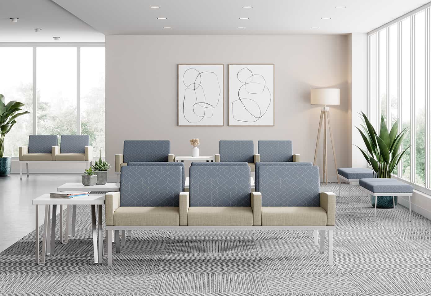 Hale Easy Access Seating, shown with Full Cap option; Fabric: Stinson Gradation Berber on backs and Architex Happy Cloud Nine on seats