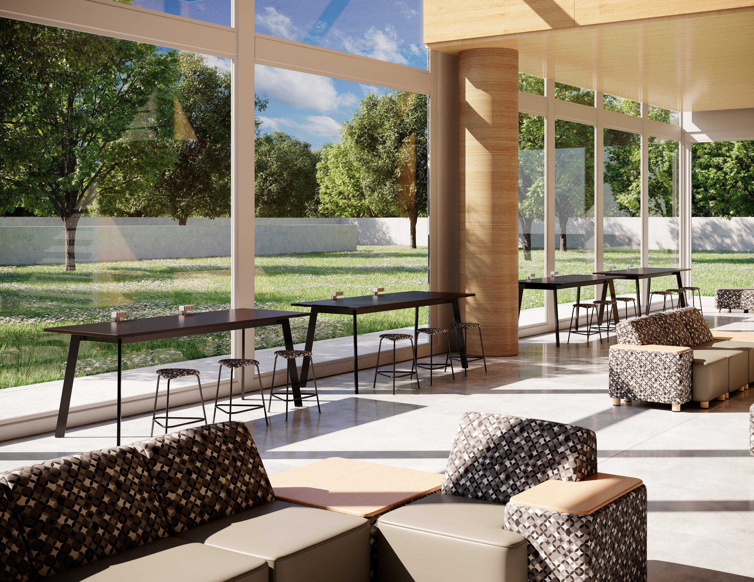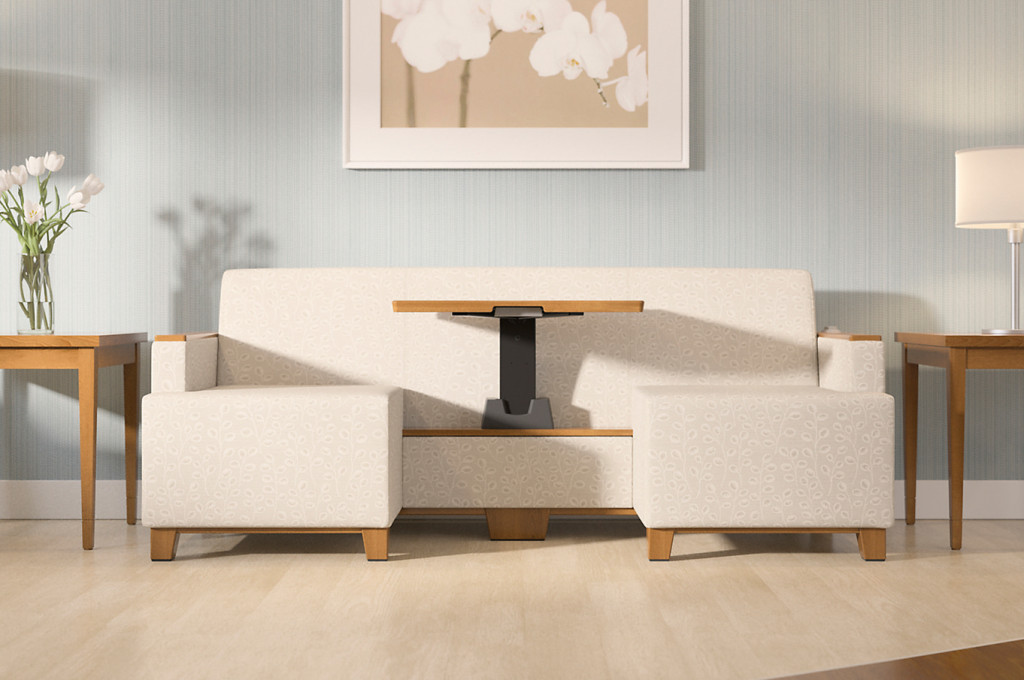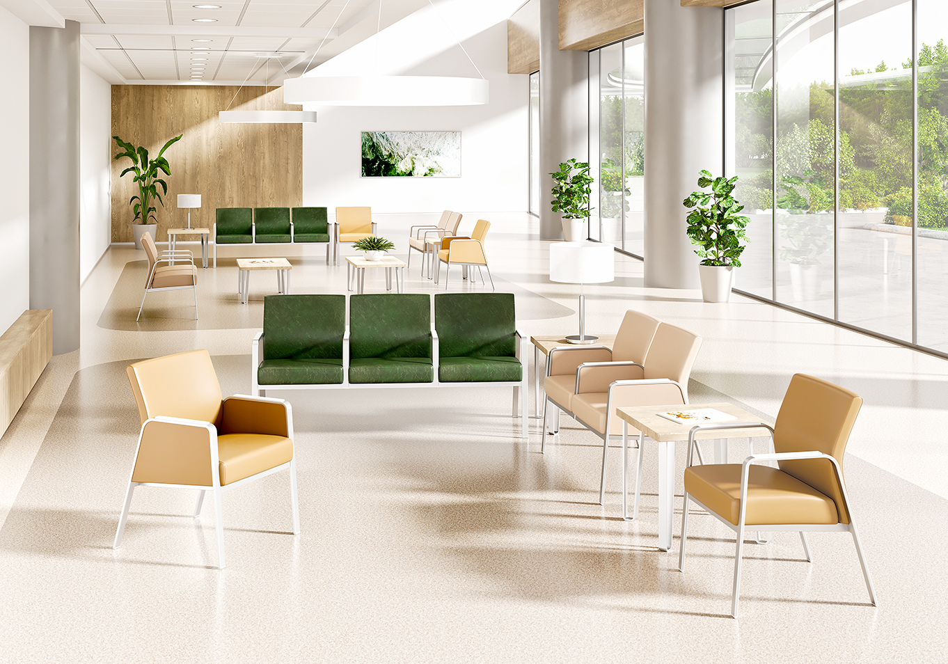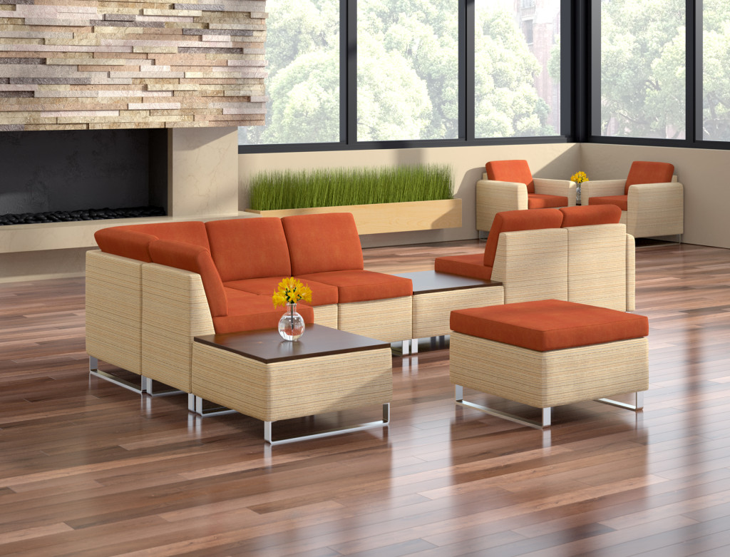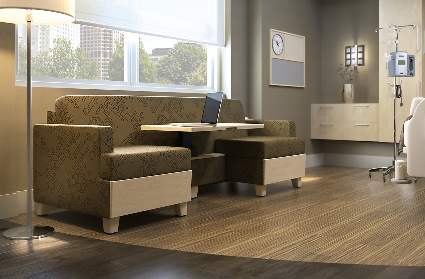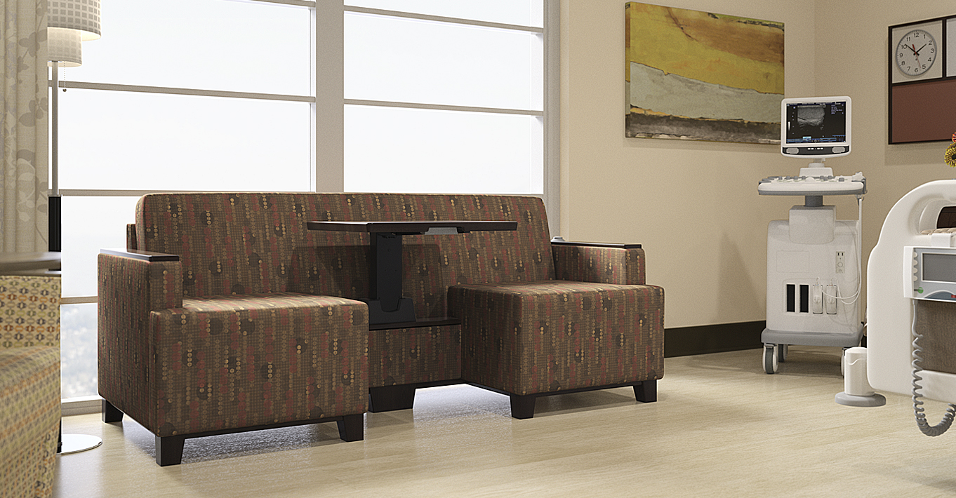 Hale Easy Access Seating, shown with Full Cap option; Fabric: Stinson Gradation Berber on backs and Architex Happy Cloud Nine on seats