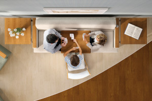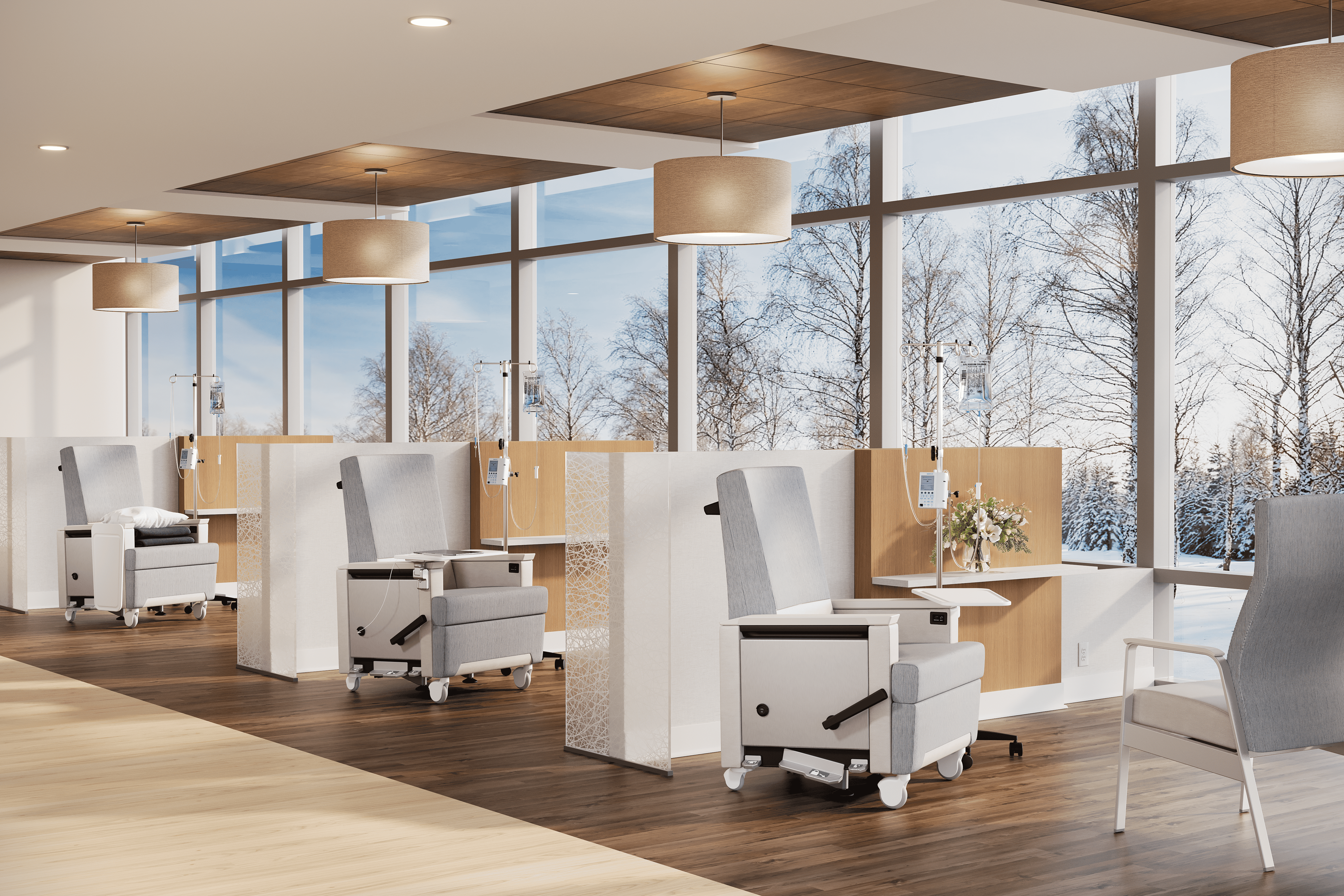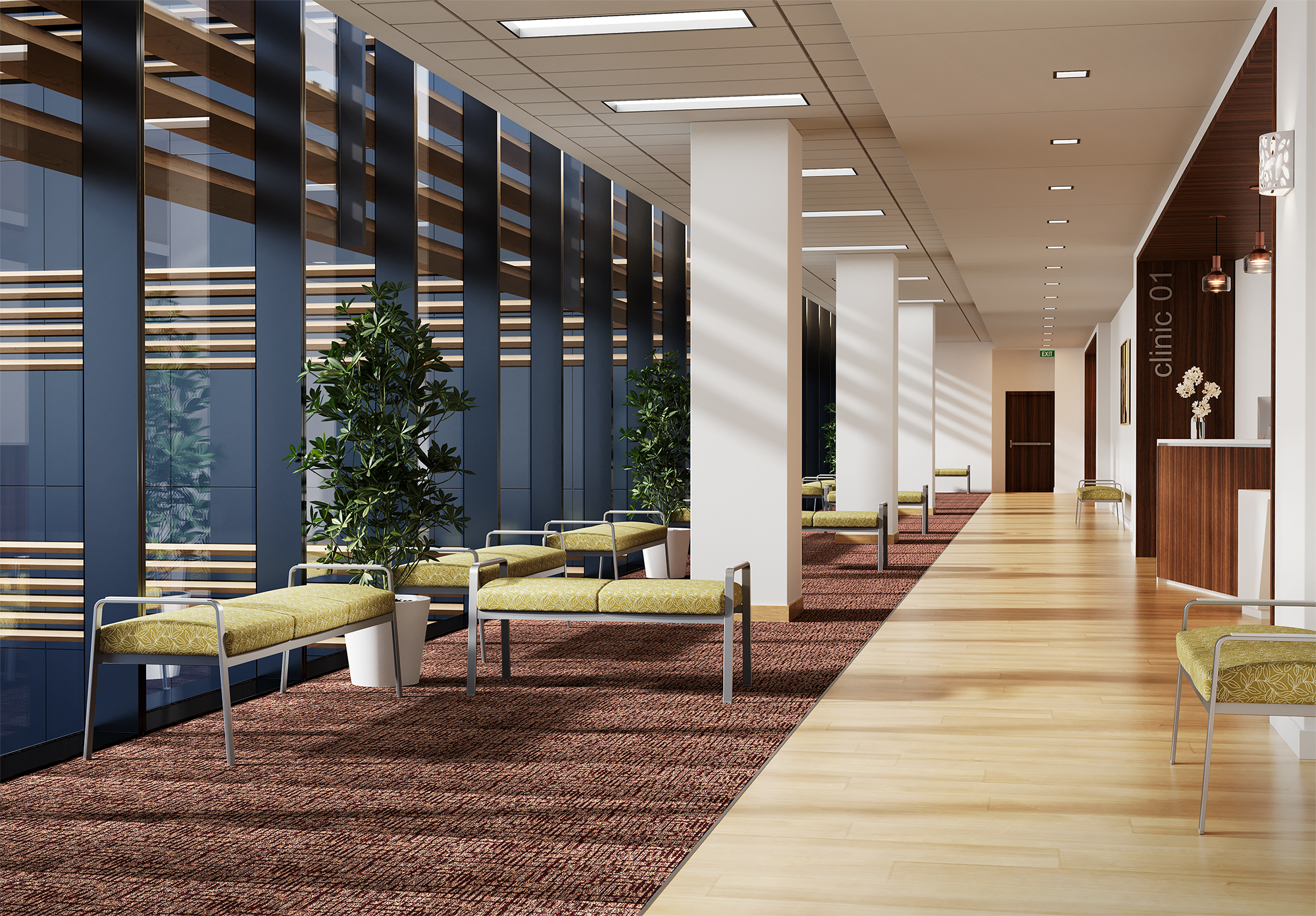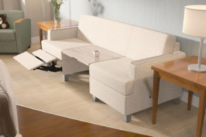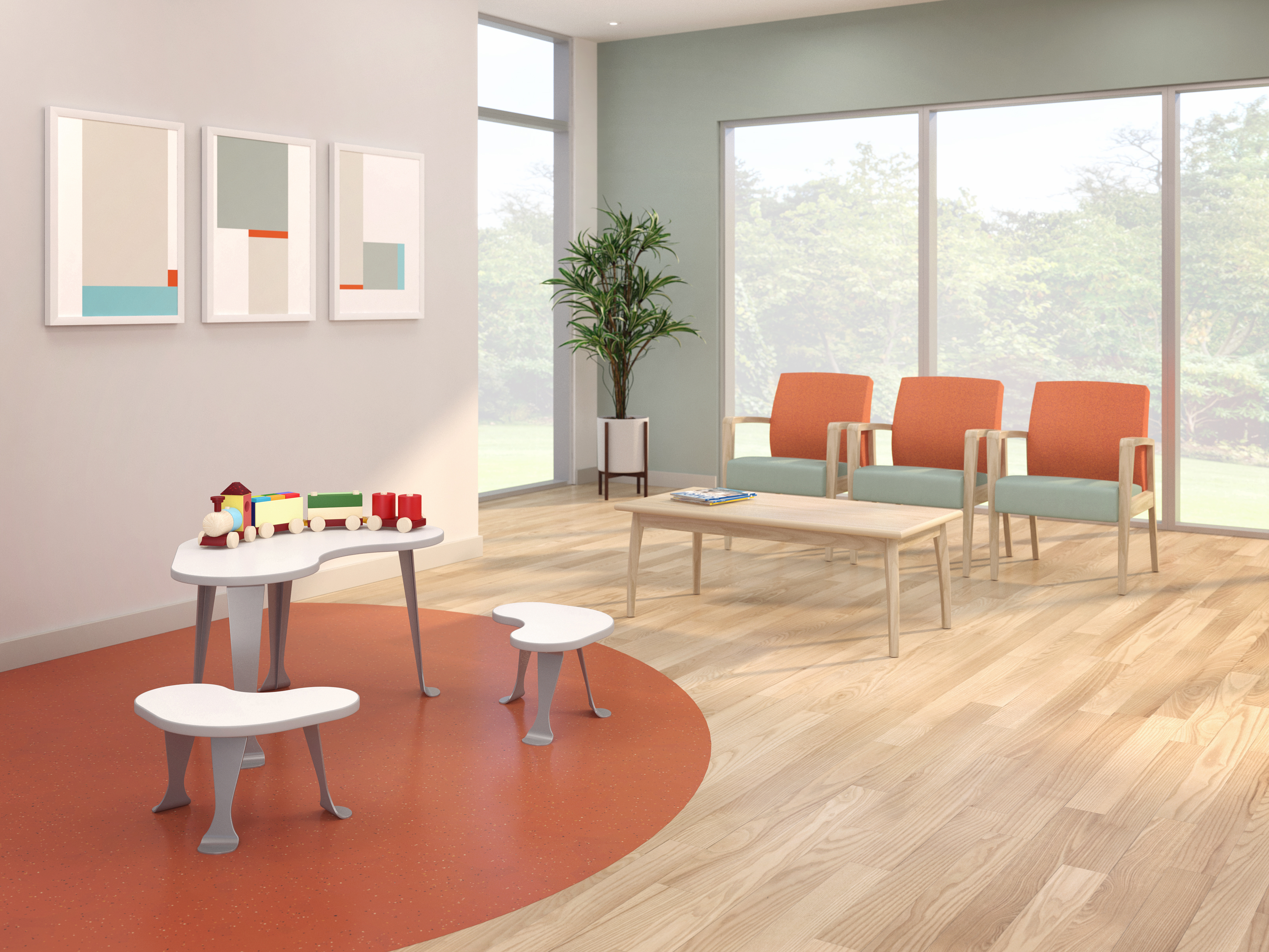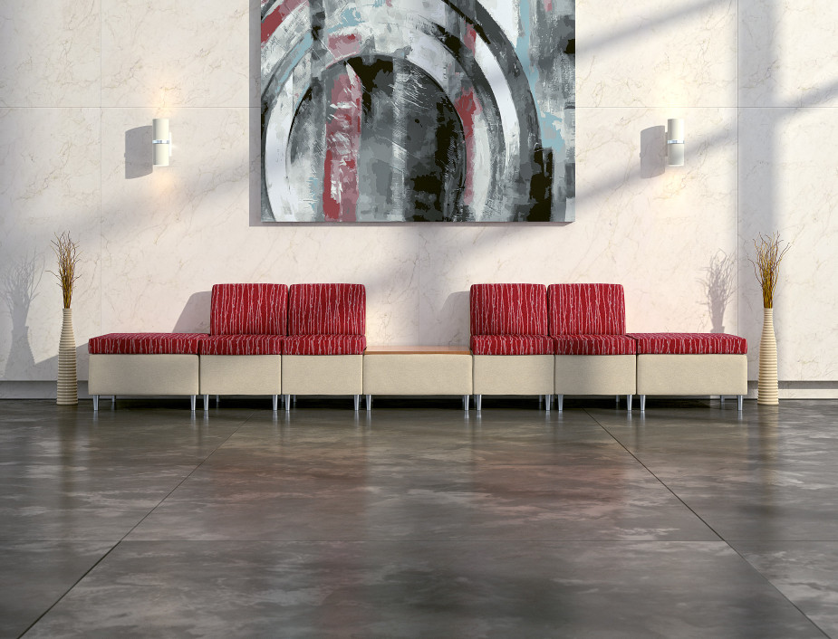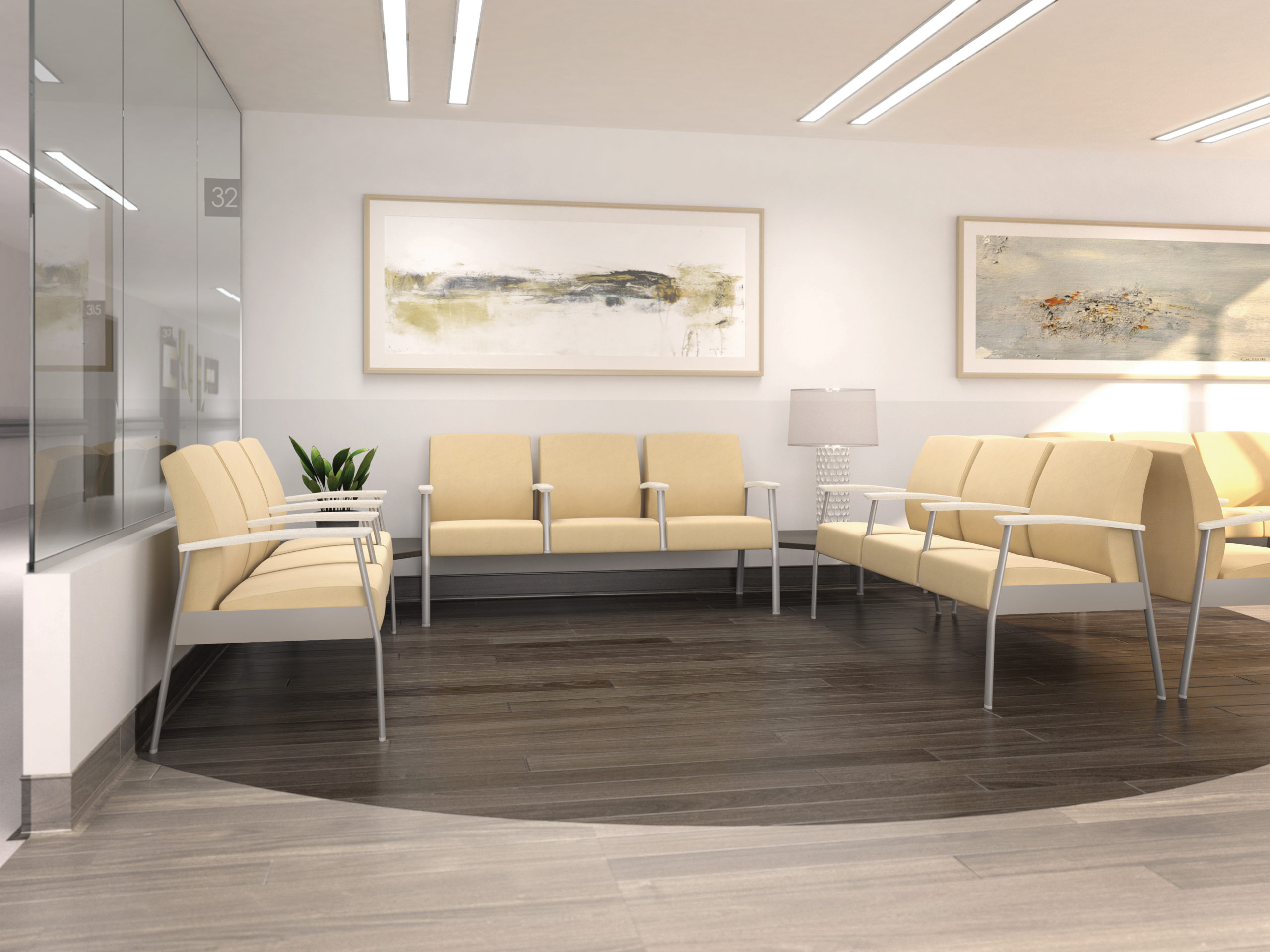 Hale Easy Access Seating, shown with Full Cap option; Fabric: Stinson Gradation Berber on backs and Architex Happy Cloud Nine on seats