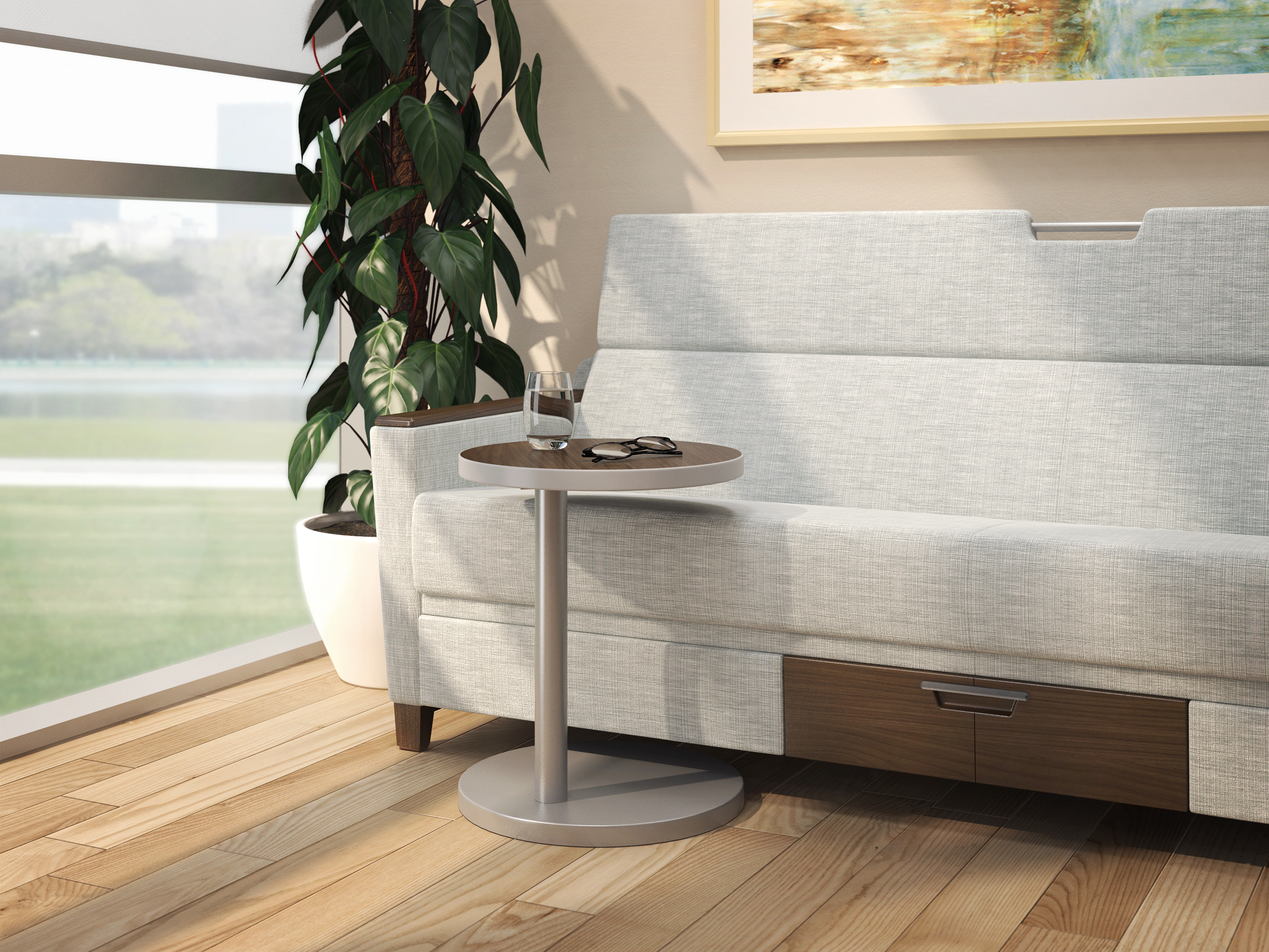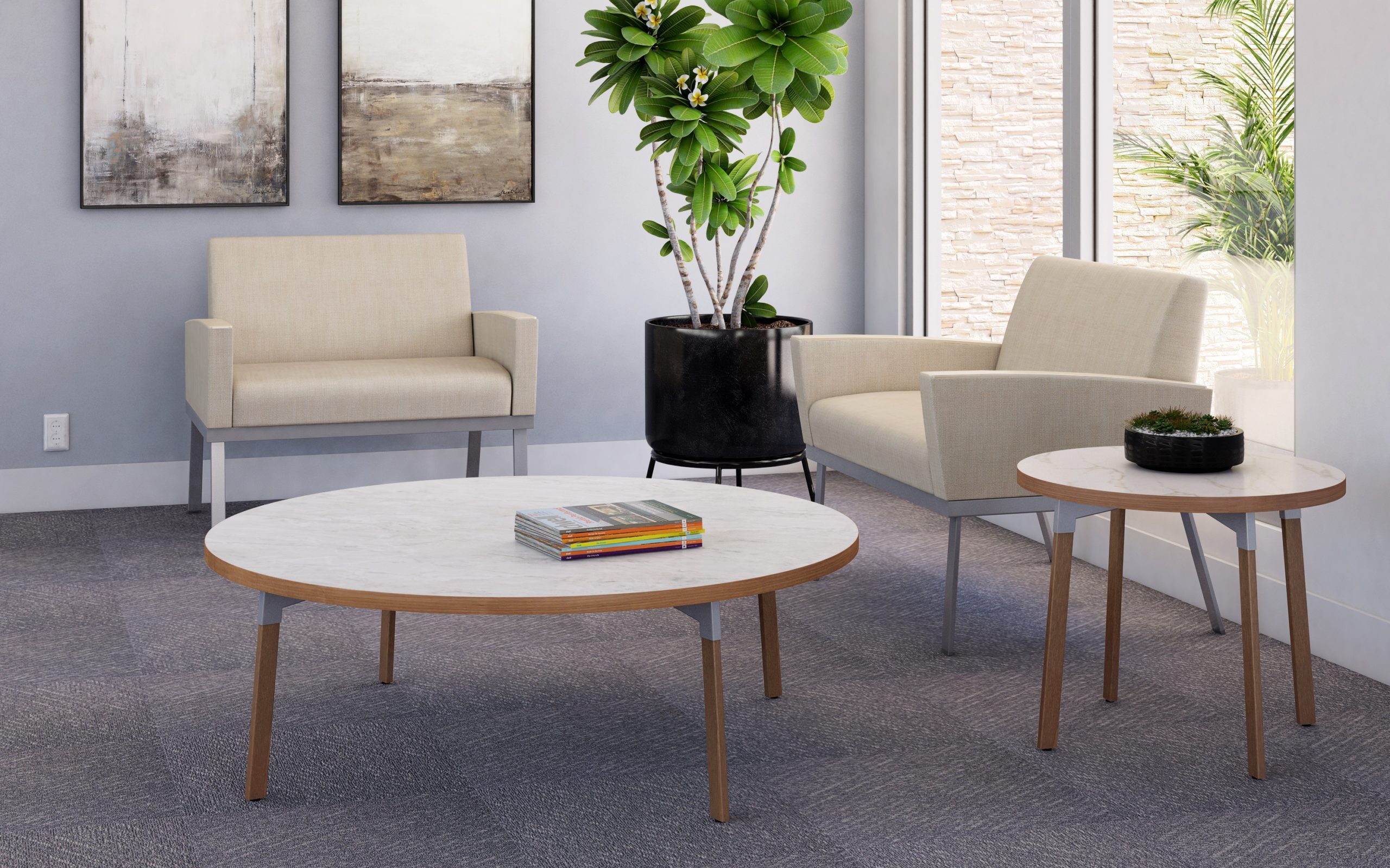 Dune Occasional Tables, shown with Round Tops and Wood Leg