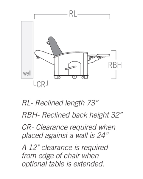- A single point ottoman handle/caster brake is recessed to minimize damage to the recliner and facility