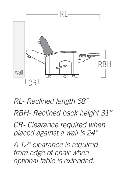 • A single point ottoman handle/caster brake is recessed to minimize damage to the recliner and facility