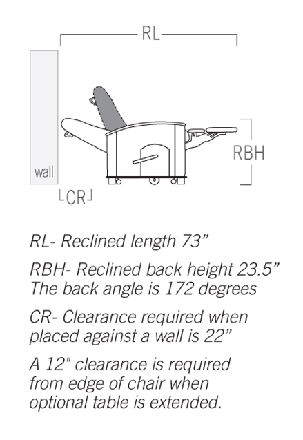 • A single point ottoman handle/caster brake is recessed to minimize damage to the recliner and facility