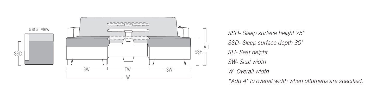 sleep sofa, custom front, 66", 69", 72", 75", 78" sleep surface